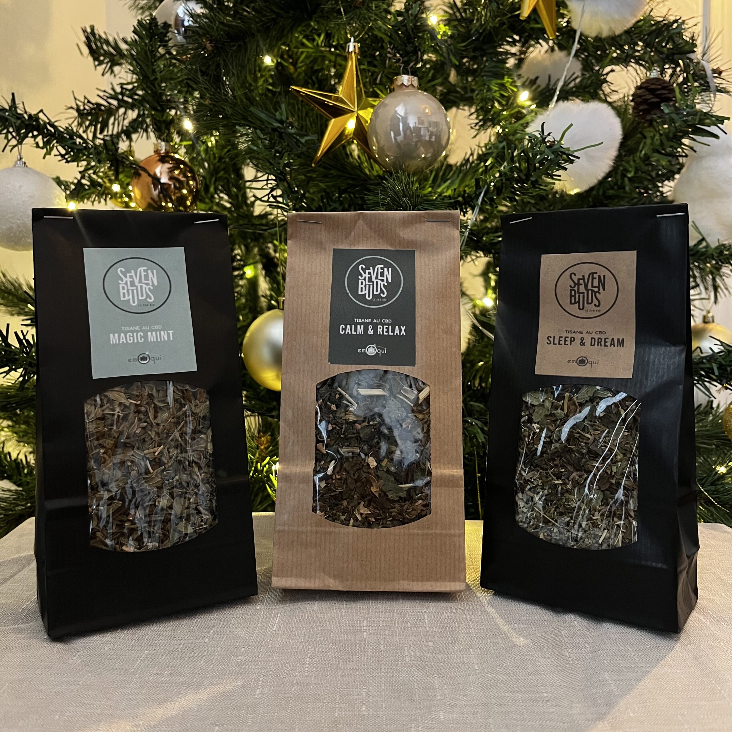 Découvrez le Pack Tisanes Seven Buds composé de nos trois infusions au CBD Bio : Calm & Relax, Sleep and Dream et Magic Mint
